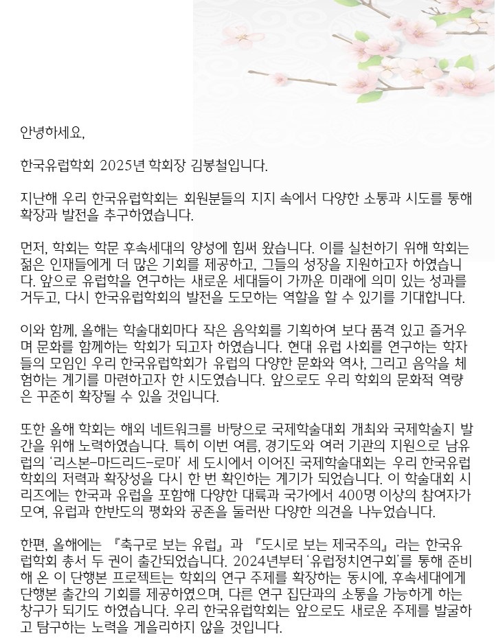 [한국유럽학회] 한 해를 마무리하며 감사의 인사를 드립니다